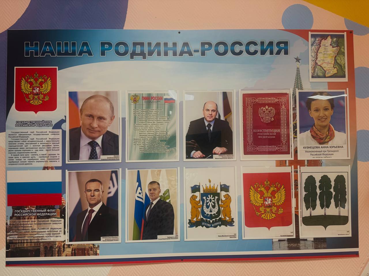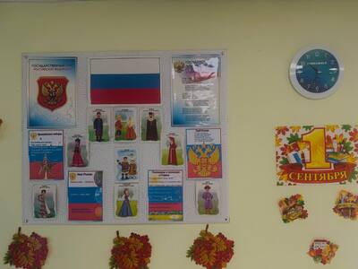 Каждый учащийся обязательно знакомится с патриотическими уголками, где расположена информация и символике страны, округа и школы.